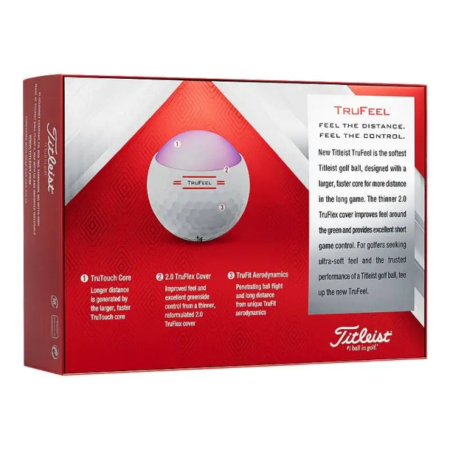 All the feel, all the distance, all Titleist. New Titleist® TruFeel™ is the softest Titleist golf ball re-designed for more distance than ever before and with a thinner cover for improved feel around the green. Plus, the quality you expect from the #1 ball in golf.
